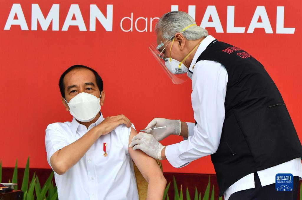 “世界的疫苗”“可及的疫苗”, 给各国民众带来战胜疫情的希望和信心。图为1月13日,印度尼西亚总统佐科(左)在雅加达总统府接种中国新冠疫苗。