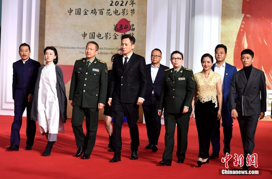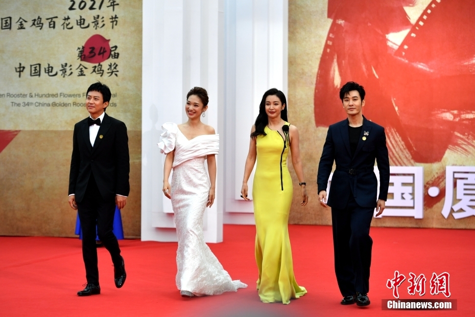 12月30日,第34届中国电影金鸡奖颁奖典礼在福建厦门举办,颁奖典礼上各项荣誉一一揭晓。图为邓超、蓝羽、李冰冰、黄晓明(从左至右)亮相红毯仪式。中新社