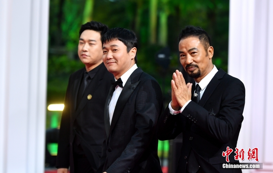 香港导演徐克(右)等亮相红毯仪式。中新社
