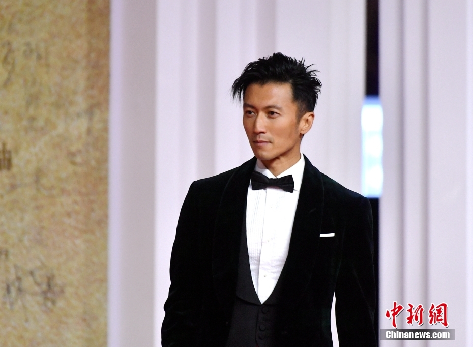 任达华(右)、肖央(中)等亮相红毯仪式。中新社