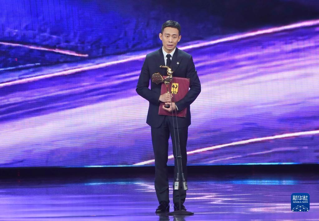 12月30日,获得最佳故事片奖的《守岛人》领奖代表发表获奖感言。新华网