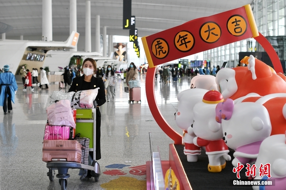 1月17日,广东省广州市旅客进入广州白云机场出发大厅。