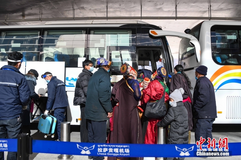 1月17日,西藏拉萨贡嘎国际机场T3航站楼,旅客准备乘坐机场大巴。