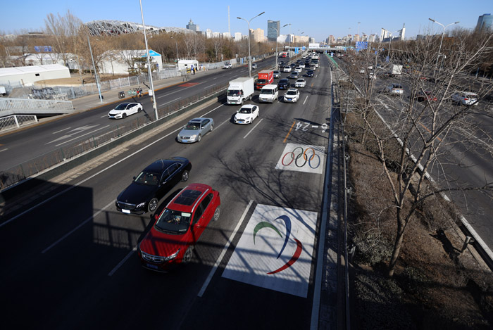 3月1日,北京冬残奥会阶段专用车道已启用。南美侨报网特约记者卞程宣摄
