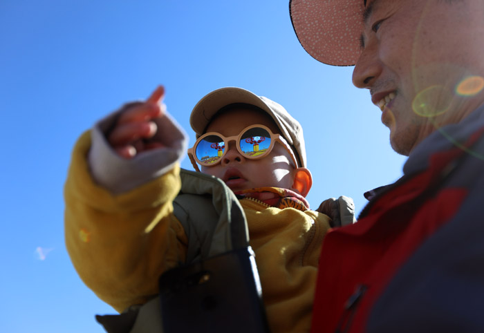 3月1日,北京2022年冬残奥会会徽亮相北京天安门广场,吸引小朋友参观。南美侨报网特约记者卞程宣摄