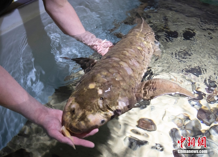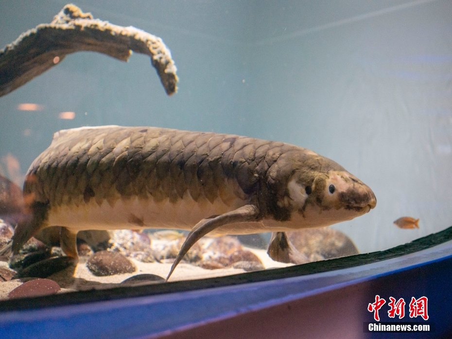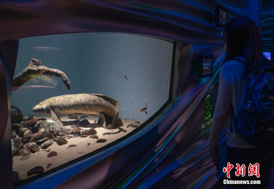 3月14日,名叫Methuselah的澳大利亚肺鱼在美国加州科学博物馆的水箱中游弋。其饲养员艾伦·简说,1938年,Methuselah从澳大利亚来到旧金山,现在大约90岁,是记录在案的世界最年长观赏鱼。Methuselah身长1.2米,重18.1公斤,爱吃新鲜的无花果,生性温和,喜欢与饲养员互动。科研人员认为,这种既有肺又有鳃的原始鱼类体现了鱼类和两栖类动物之间的进化联系。