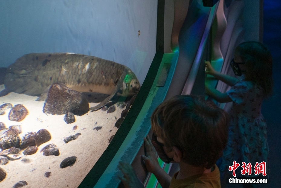 14日,美国加州科学博物馆名为Methuselah的澳大利亚肺鱼受到小朋友注意。