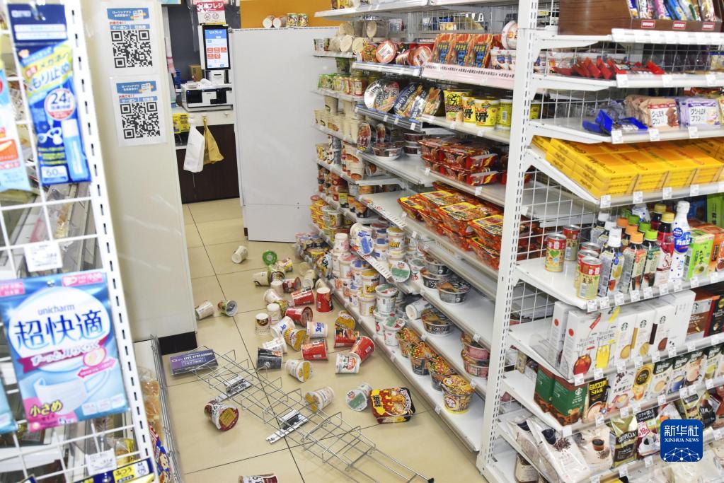 据日本气象厅消息,日本福岛县附近海域16日发生7.3级地震,福岛县、宫城县震感强烈,日本气象厅对上述两地发出海啸警报。图为3月16日,在日本福岛县福岛市,便利店的商品因为地震掉落在地上。