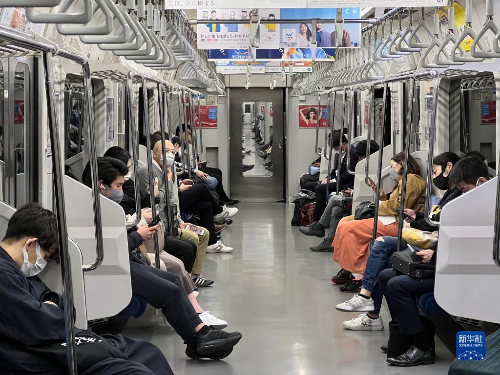 3月16日,日本东京JR横须贺线因地震停车,乘客被困车厢中(手机摄影)。
