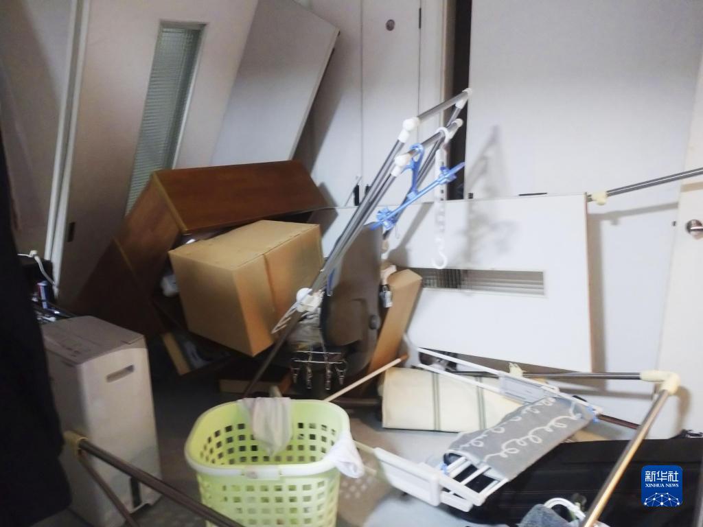 3月16日,在日本福岛县郡山市,一居民家中家具因为地震倒地。