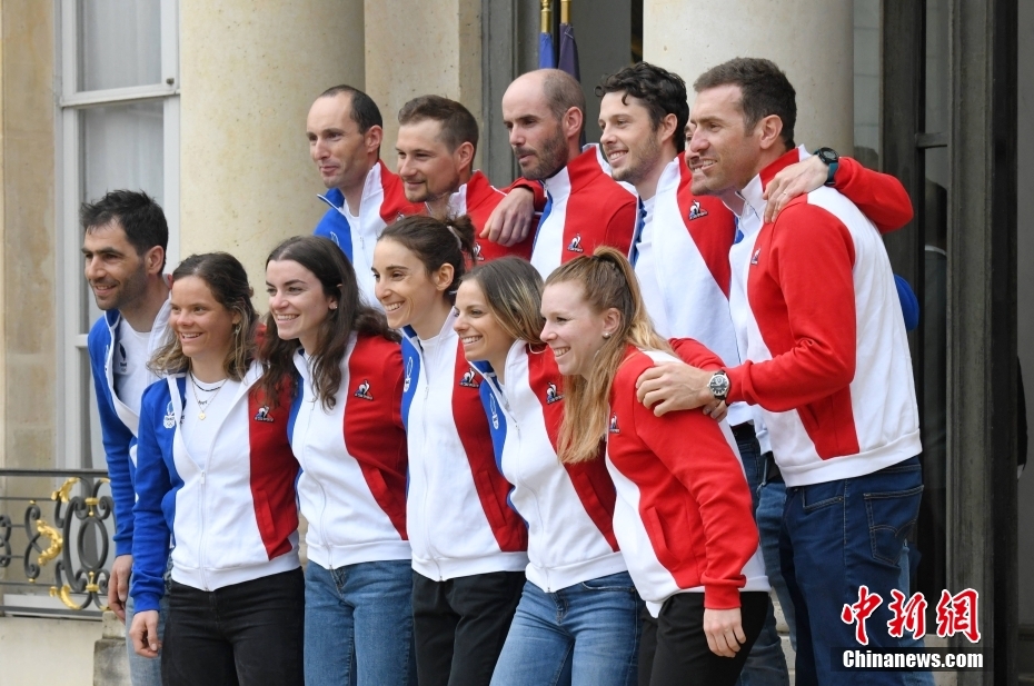 3月29日,北京冬奥会和冬残奥会法国代表团表彰仪式在巴黎举行。图为当天出席仪式的部分法国运动员合影。