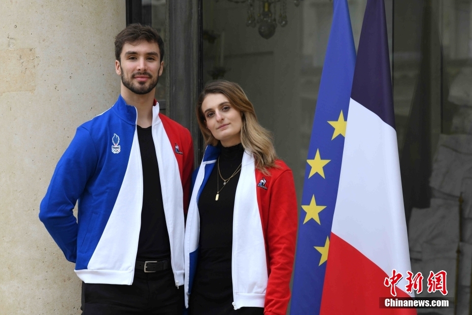 法国花样滑冰组合加布里埃拉·帕帕达吉斯和纪尧姆·西泽龙亮相。他们在北京冬奥会上夺得花样滑冰冰舞项目的金牌。