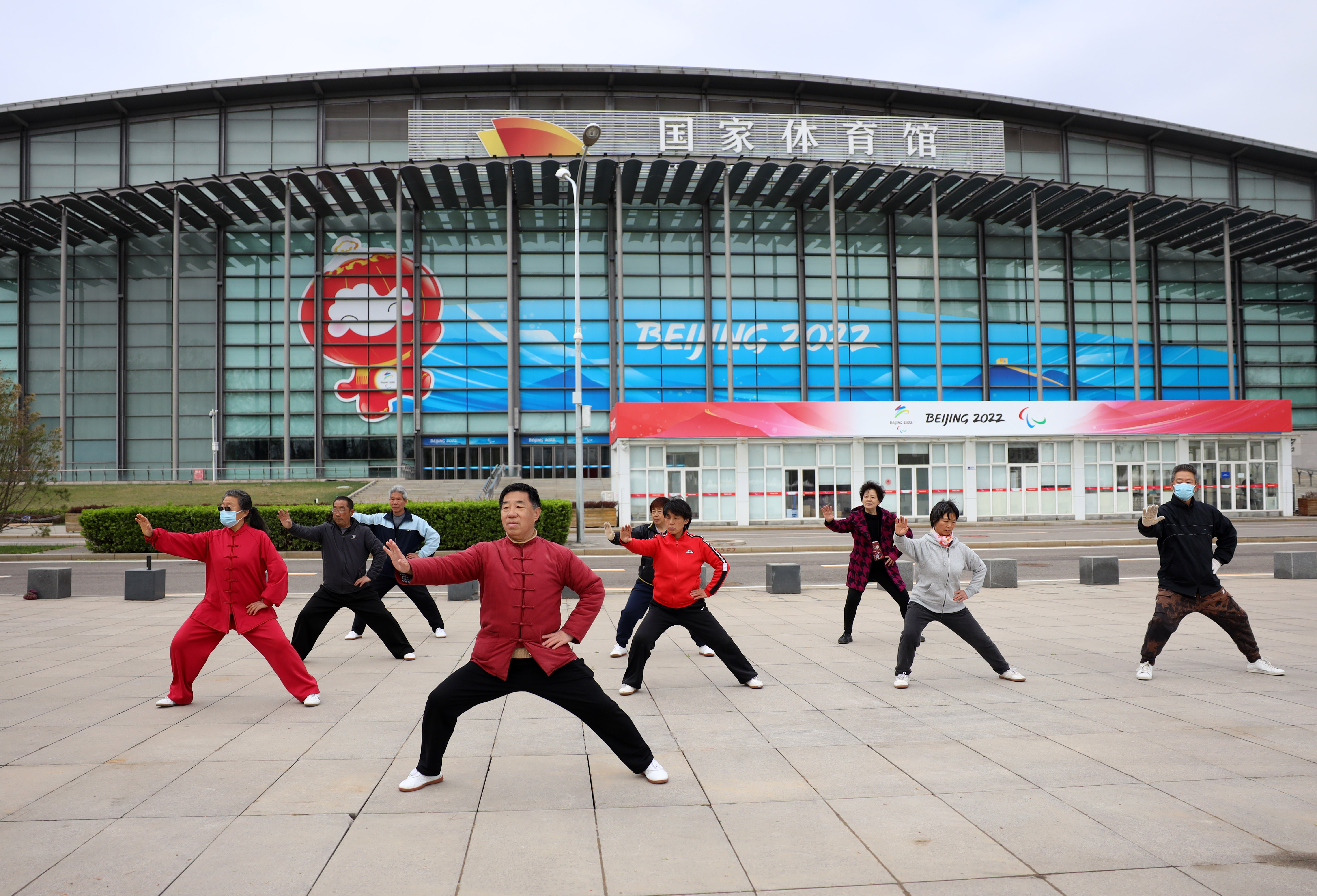 4月6日,在2022年北京冬奥会、冬残奥会期间进行封闭管理的北京奥林匹克公园中心区正式向公众重新开放,区域内的北京赛区火炬台、北京颁奖广场等冬奥景观吸引游客参观打卡。据了解,北京冬奥会和冬残奥会部分场馆计划“五一”前对外开放。中国国家游泳中心“冰立方”也将于本月开放,公众可体验冬奥赛场原貌。 图为2022年4月6日,北京奥林匹克公园中心区向公众重新开放,民众在园区内练习太极拳。 南美侨报网特约记者卞程宣摄