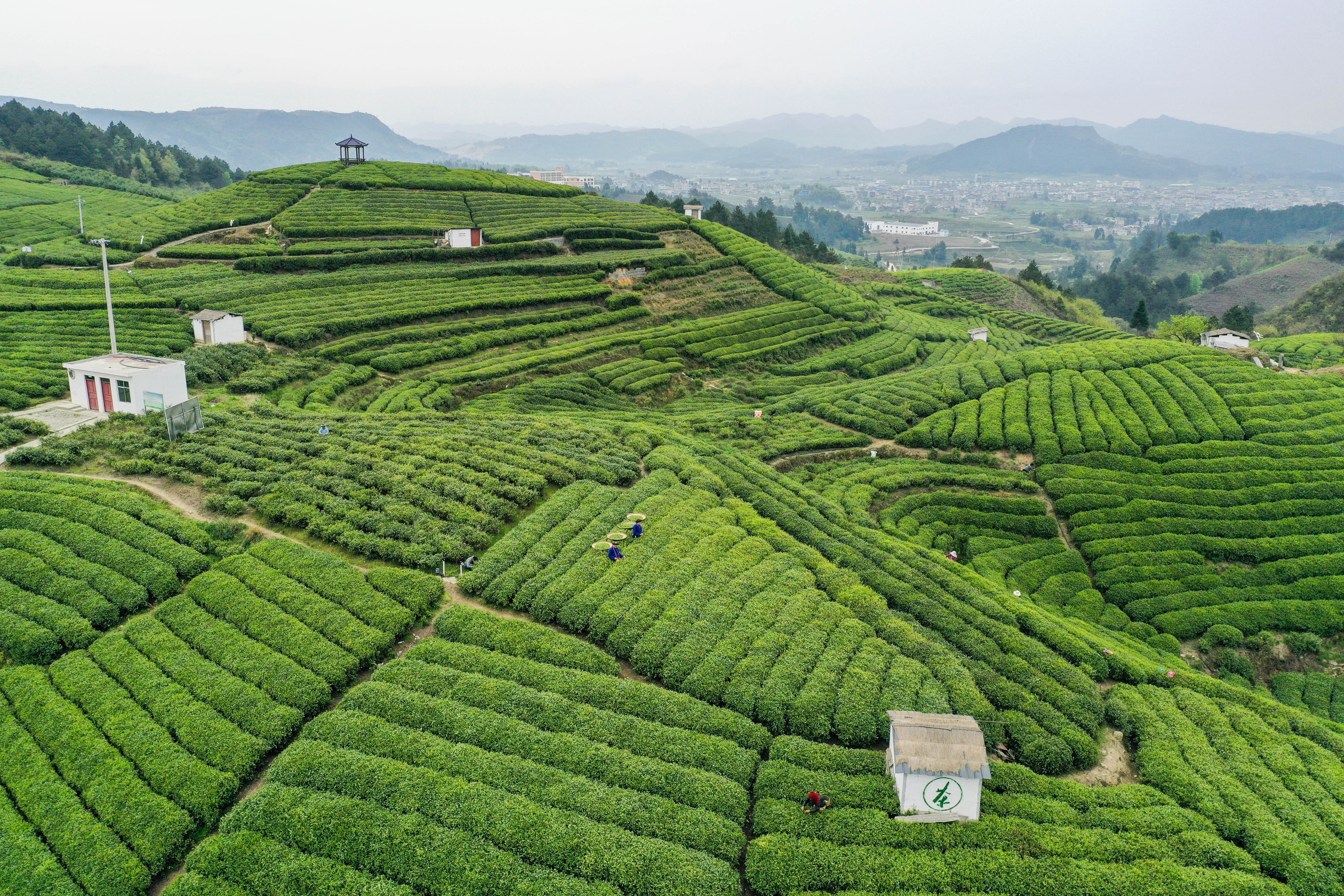 4月5日,航拍贵州省贵定县云雾镇的茶园。(无人机照片)