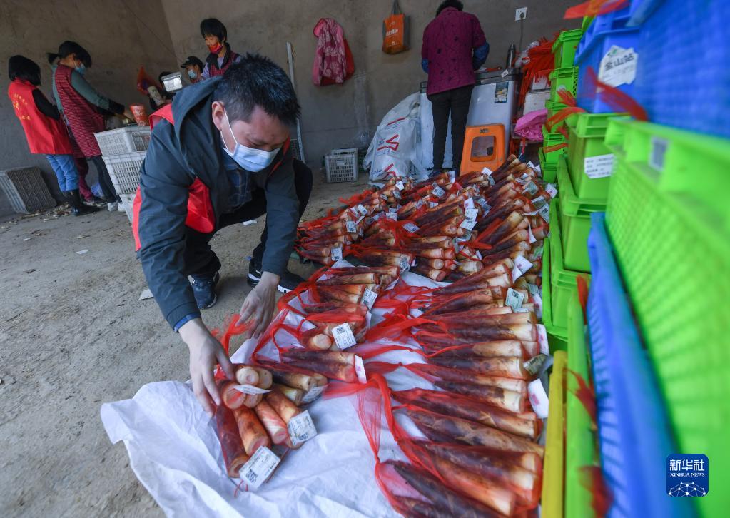 为保障上海市民的菜篮子,连日来,浙江省杭州市临安区太湖源镇组织党员志愿者和当地笋农一起分拣、打包竹笋,同时协调冷链运输车,每天向上海发送3万斤左右的鲜笋。图为4月7日,在杭州市临安区太湖源镇竹笋交易市场,党员志愿者帮助笋农一起分拣、称重、打包竹笋。新华网