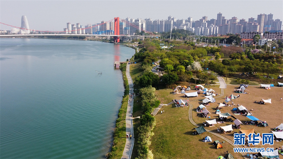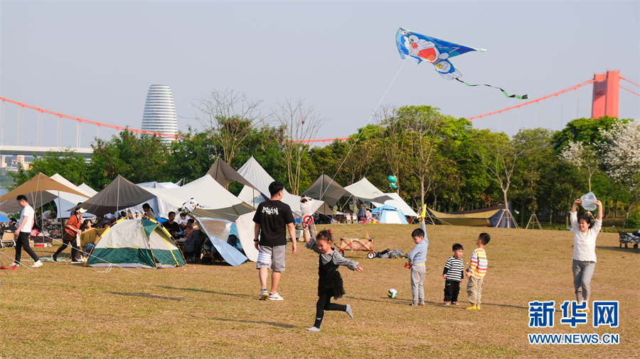 不少南宁市民表示,如果没有去邕江边搭帐篷野餐露营,假日是不完整的,不用翻山越岭,“家门口”也能寻找露营的乐趣。晒着太阳、吹着江风、踏青赏花的惬意生活,也刷爆了南宁人的朋友圈。图为孩子们在江边踢球、放风筝。新华网