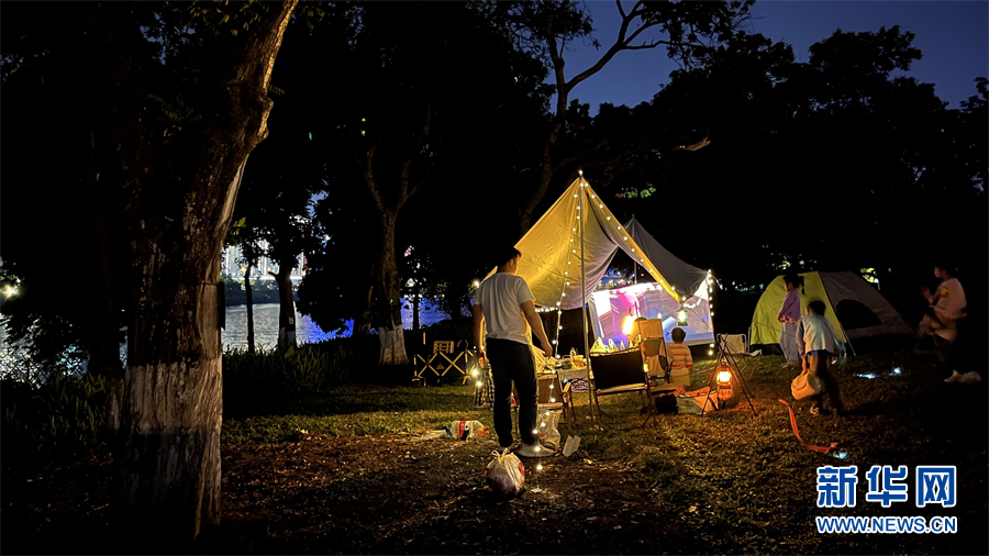 近日,南宁市公共资源交易中心发布的南宁市百里秀美邕江商文体旅基础设施提升项目可行性研究报告、设计(不含码头、趸船、游船)招标公告显示,南宁市还将在邕江两岸新添一批帐篷营地、房车营地、商业街区等商文体旅设施。未来,市民在邕江边的休闲娱乐场景将更加丰富。图为夜幕降临,南宁市民在邕江边露营看电影。新华网