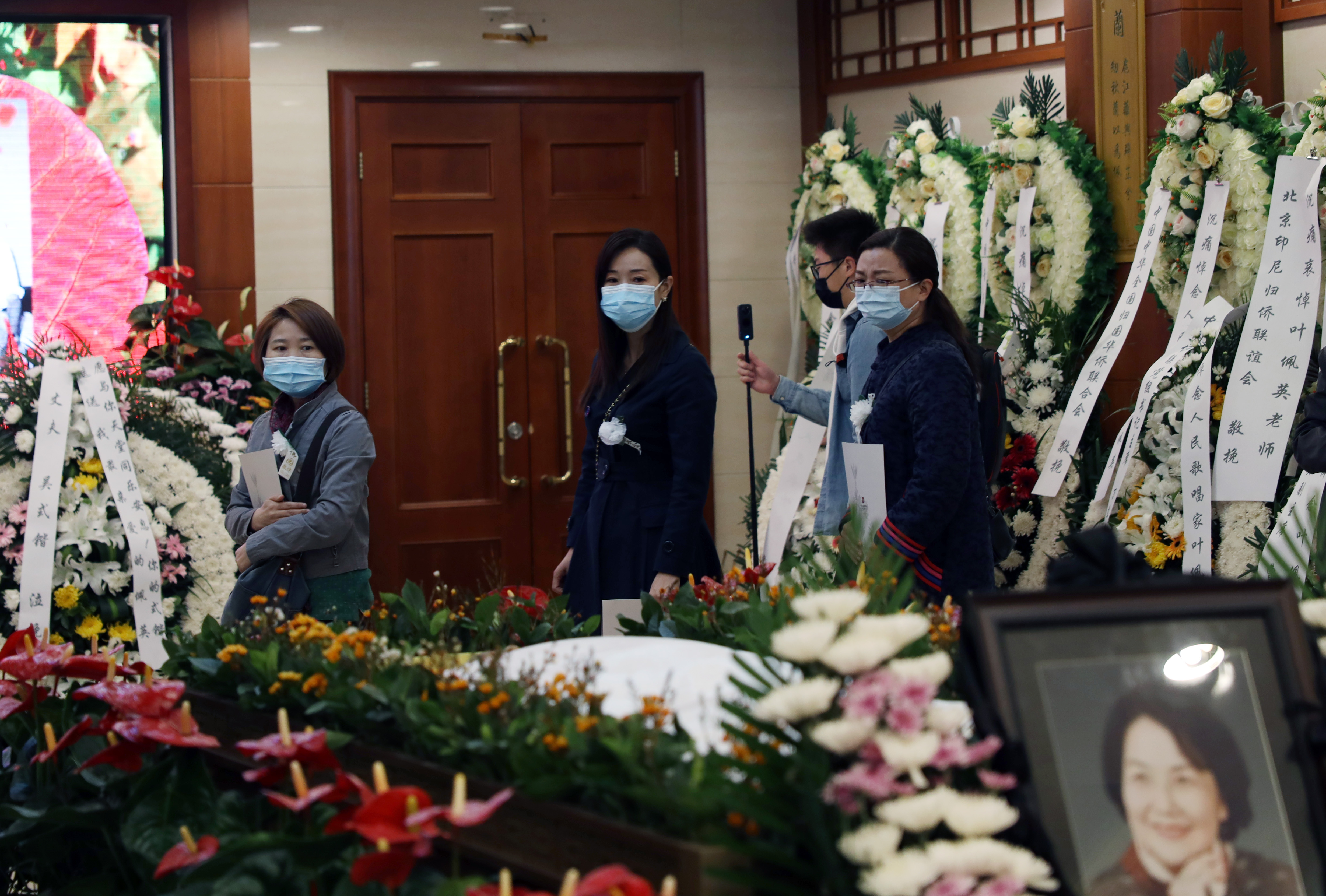 4月13日,侨界著名女高音歌唱家叶佩英遗体告别仪式在北京举行,其亲属、生前好友以及北京中央音乐学院师生等前往送别。叶佩英于2022年4月7日在北京逝世,享年87岁。叶佩英1935年出生于马来西亚吉隆坡,祖籍广东惠阳,1951年回到中国。她因在上世纪70年代电影《海外赤子》中首唱《我爱你,中国》而享誉海内外,激发了许许多多的华侨华人的投资祖国、建设故乡的热情。图为各界民众在北京八宝山殡仪馆送别归侨歌唱家叶佩英。南美侨报特约网记者卞程宣摄