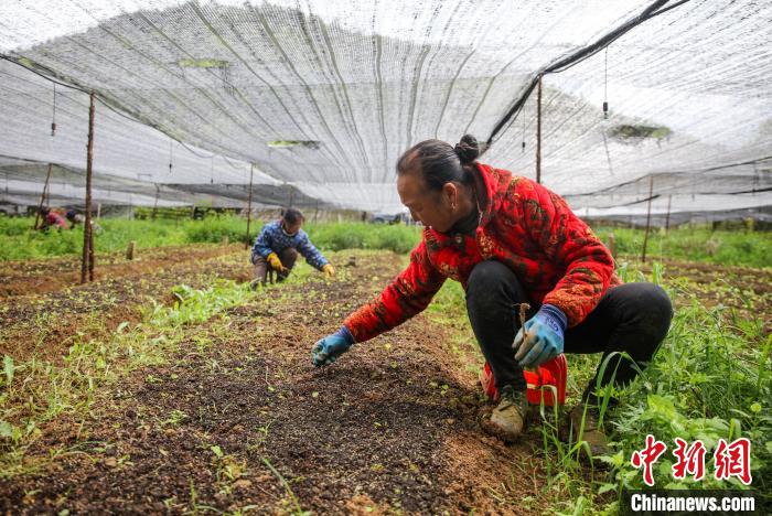 4月20日是谷雨节气。谷雨时节,农事正忙时。中国各地田间地头,民众纷纷忙于春耕春种春管,呈现出一片繁忙景象。图为施秉县杨柳塘镇地坝村村民在种植辣椒。中新网
