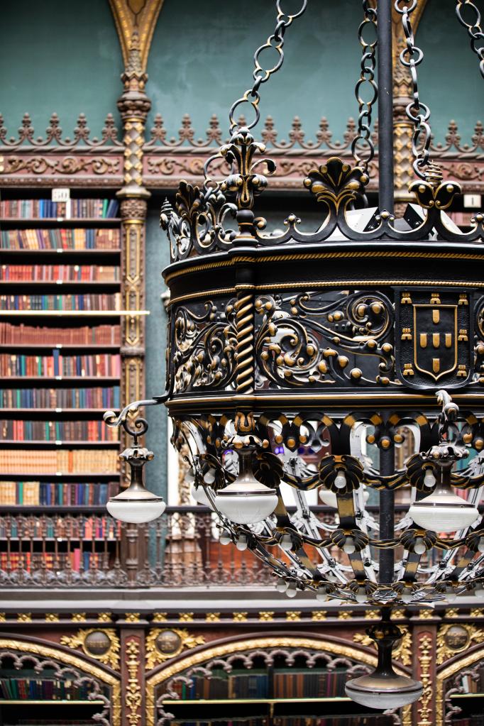 4月19日在巴西里约热内卢皇家葡文图书馆内拍摄的枝形吊灯。