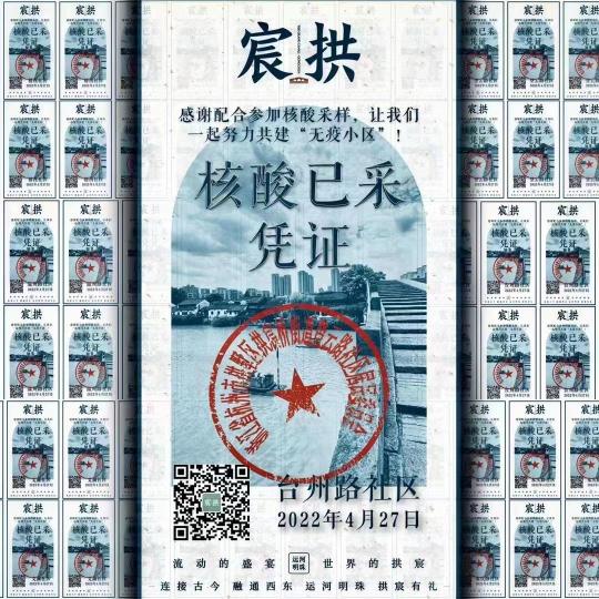 杭州市拱墅区拱宸桥街道核酸凭证。拱宸桥街道供图