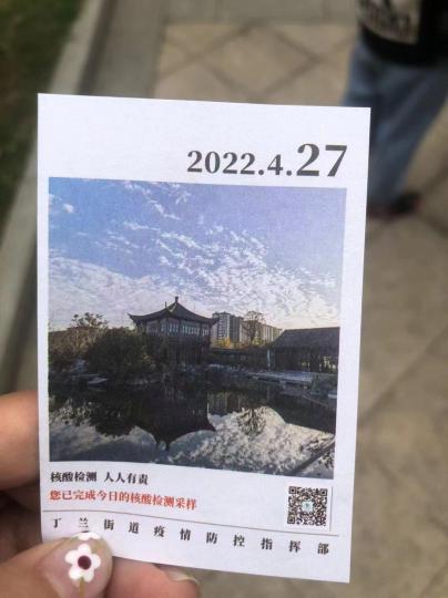 杭州市上城区丁兰街道核酸凭证。丁兰街道供图