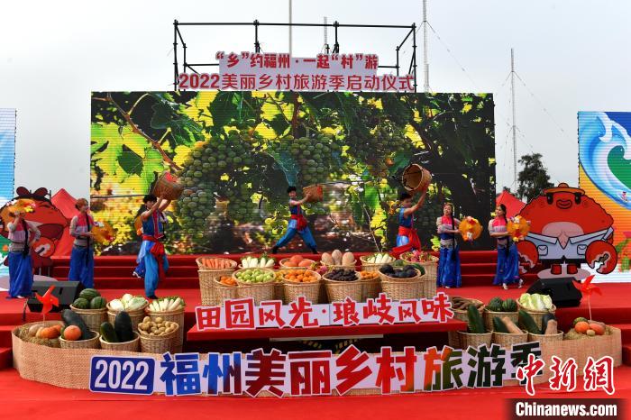 2022福州美丽乡村旅游季将持续3个月,其间主办方将充分挖掘乡村“福”文化,精心策划一起来“蟳”福、一起去村游、一起过“村”节等三大配套活动。图为4月28日,2022福州美丽乡村旅游季启动仪式现场。新华网