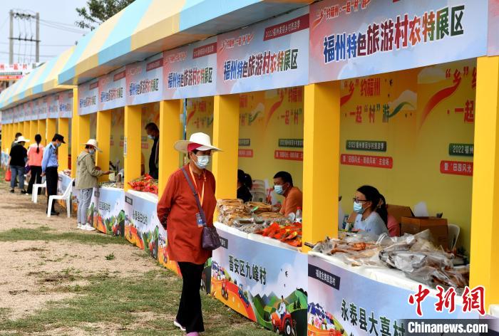 琅岐岛位于闽江入海口,是淡咸水交汇处,有着独特的水质、水温、盐度以及丰富的饵料,造就了水产、瓜果、蔬菜独特的风味,让游客尽情品味“舌尖上的琅岐”。此外,21个特色旅游村的特色“好物”也都在现场展示,让游客体验一站式购物的乐趣。图为福建农特展区吸引游客参观。中新网
