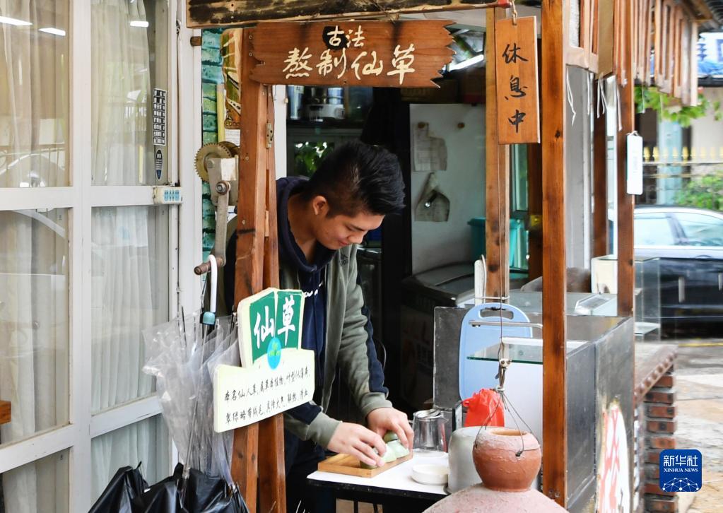 2019年底,高中毕业的陈纬追随父亲来到厦门创业打拼,却被突如其来的疫情打乱创业计划。父子俩最终决定经营私人厨房,取名“阿纬厨房”。现在,餐馆生意慢慢步入正轨。陈纬说:“用地道的台湾风味美食,为食客们带来不一样的美味体验,这是我的创业目标。今后,我的梦想是找个理解我的另一半,共同把‘阿纬厨房’办成美食连锁店,开到全国各地。”图为在“更也酒肆”里,王圣棻(右)为顾客制作饮品(5月1日摄)。