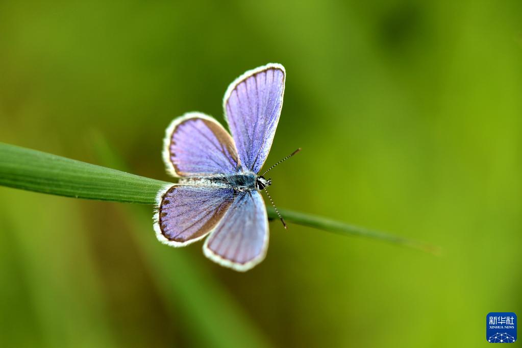 4月29日,在山东省邹平市,一只小蝴蝶在植物上驻足。新华网