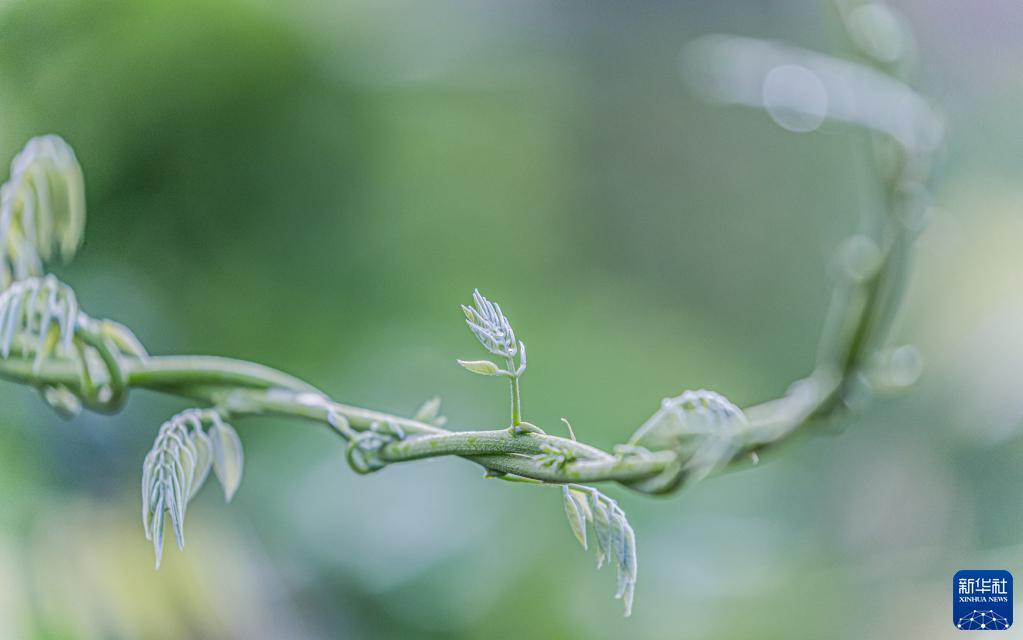 4月28日,安徽省铜陵市南湖公园内,野豌豆卷曲的茎蔓仿佛夏日的音符。新华网
