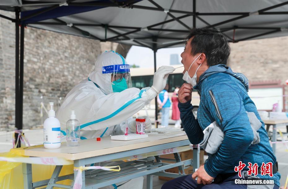 5月8日,北京市东城区一处核酸检测点,医务人员为市民做咽拭子采样。中新网
