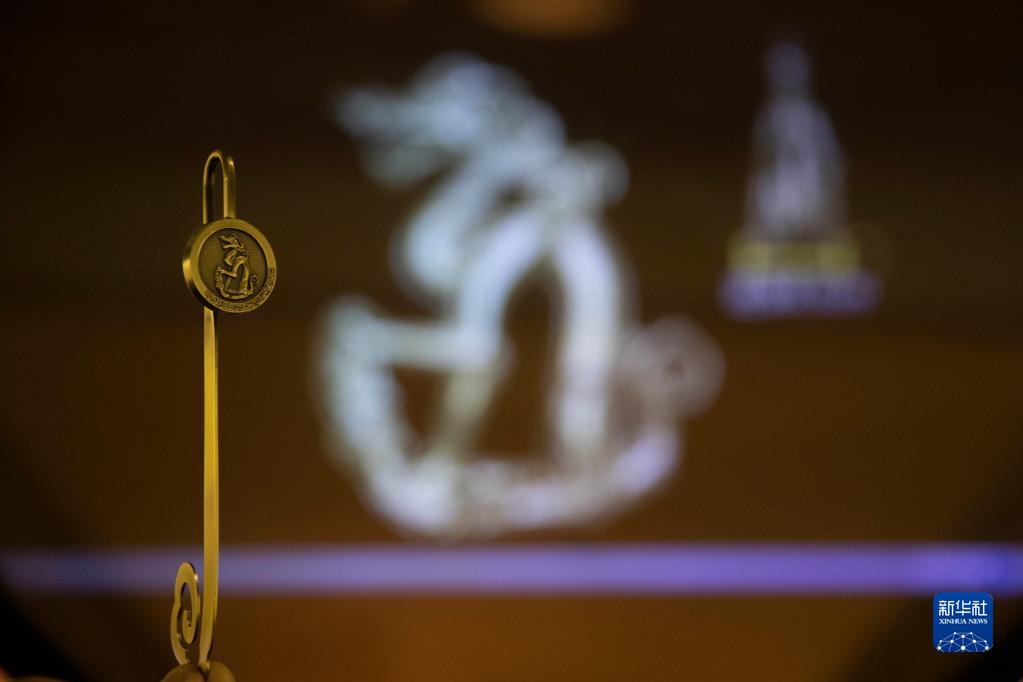 黑龙江省博物馆收藏的铜坐龙是金代早中期器物,出土于哈尔滨市阿城区金上京会宁府遗址,为中国一级文物,是黑龙江省博物馆的“镇馆之宝”。铜坐龙为黄铜铸造,通高19.6厘米,重2100克。它集龙、麒麟、狮、犬形象和特点于一身。近年来,黑龙江省博物馆以铜坐龙为原型设计了一批文创产品,兼具收藏性与实用性,深受游客喜爱。图为以铜坐龙为原型设计的金属书签。新华网