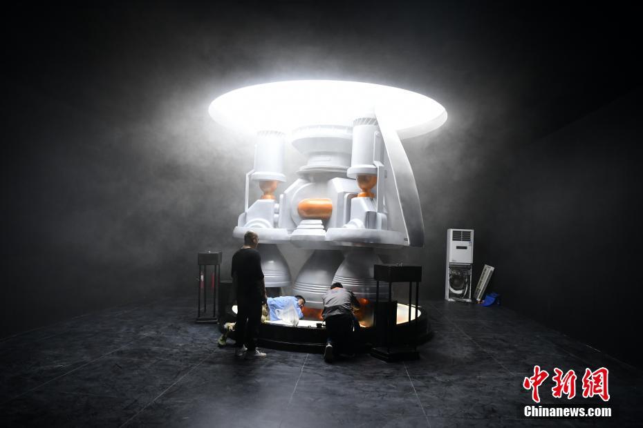 观众在中国航天文创艺术展中体验“火箭发动机”。 中新网