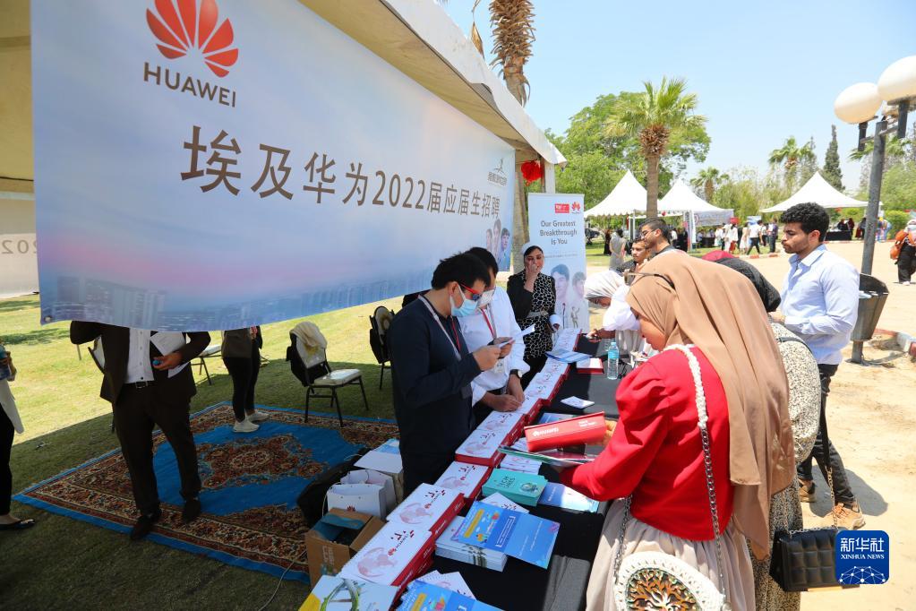 5月17日,在埃及伊斯梅利亚,埃及学生在华为埃及公司招聘展位询问信息。新华网