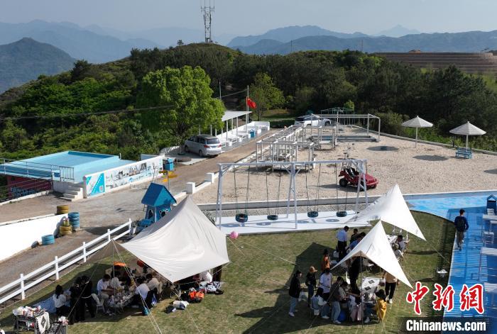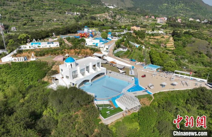 浙江丽水是中国的重点侨乡之一。青田县拥有33万华侨华人,无数青田人从山城走出去,如今又有许多青田华侨回归故里。在青田县鹤城街道仁塘湾村,西班牙华侨张玲晓8年前回乡,开始做农旅融合项目,把家乡一处荒废的果园打造成“藏在大山深处的‘小圣托里尼’”——绿湾庄园,以地中海风格的建筑和设施成为当地的“网红打卡点”,每年吸引约10万人次游客,带动当地旅游业发展。图为航拍位于山间的欧式风情绿湾庄园。