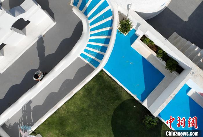 鸟瞰绿湾庄园“圣托里尼”风格建筑设施。