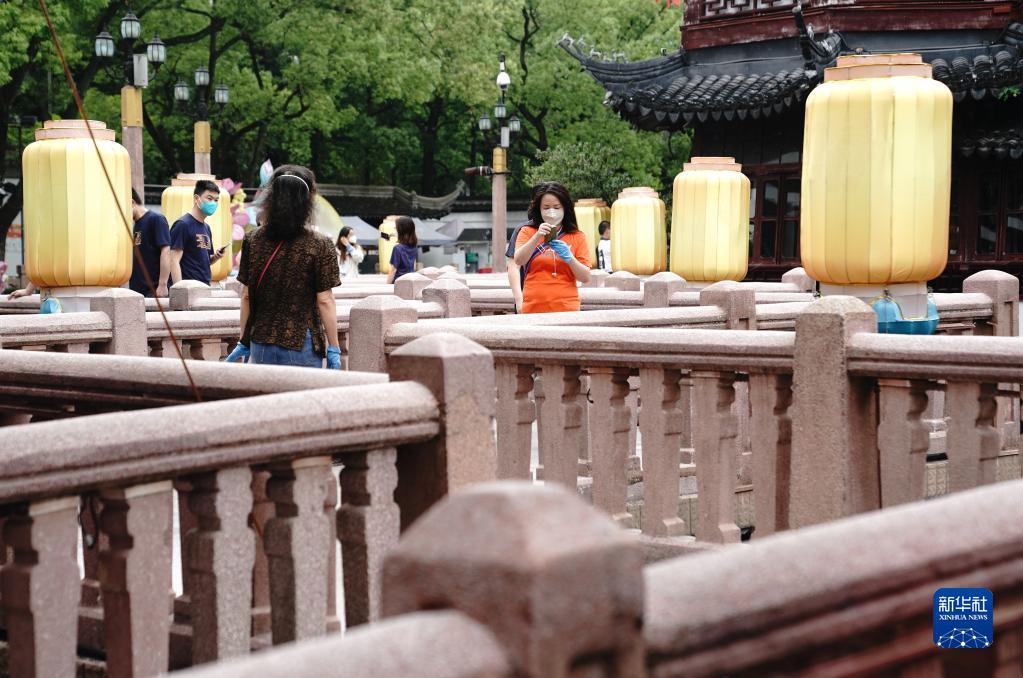 5月28日,市民在上海豫园商城外准备扫码入园。新华网