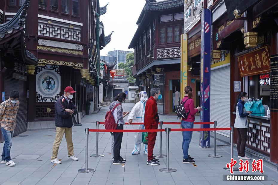 图为5月28日,民众在豫园商城部分商铺前,有序排队购物。 中新网