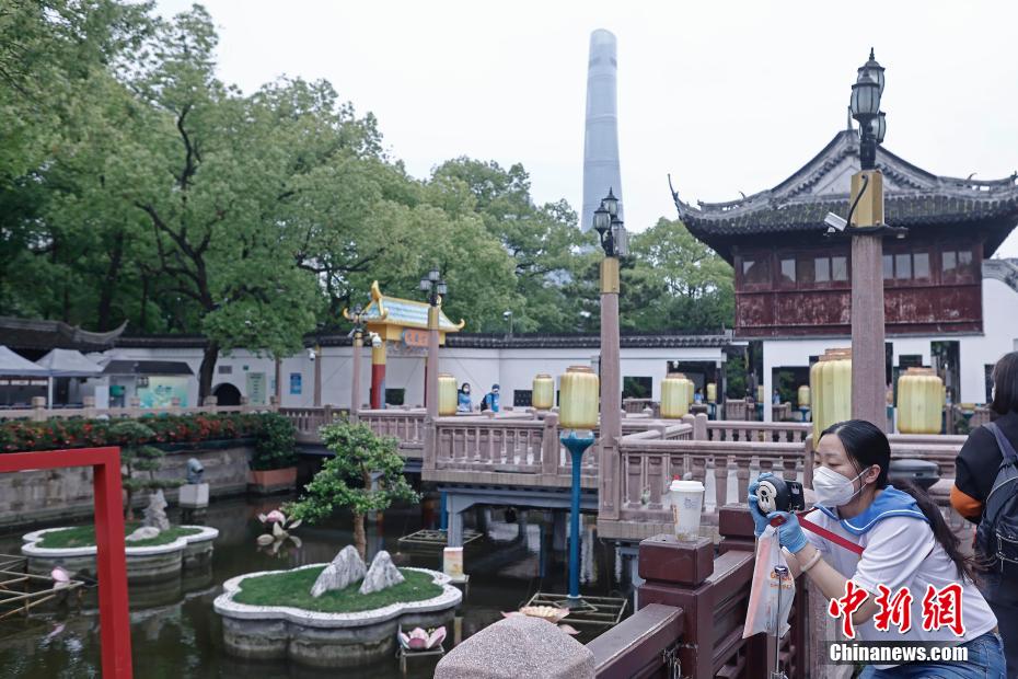 图为5月28日,市民在豫园商城九曲桥上合影。中新网