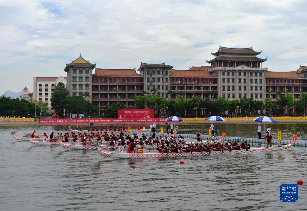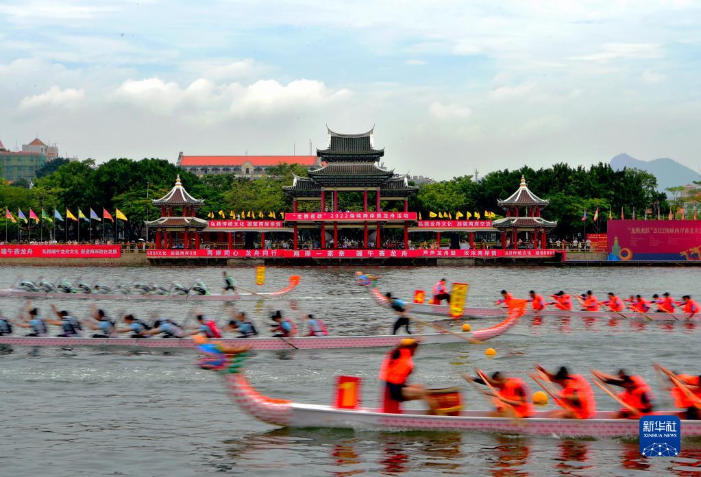 6月2日拍摄的“龙腾虎跃”2022海峡两岸赛龙舟活动的龙舟比赛现场。新华网
