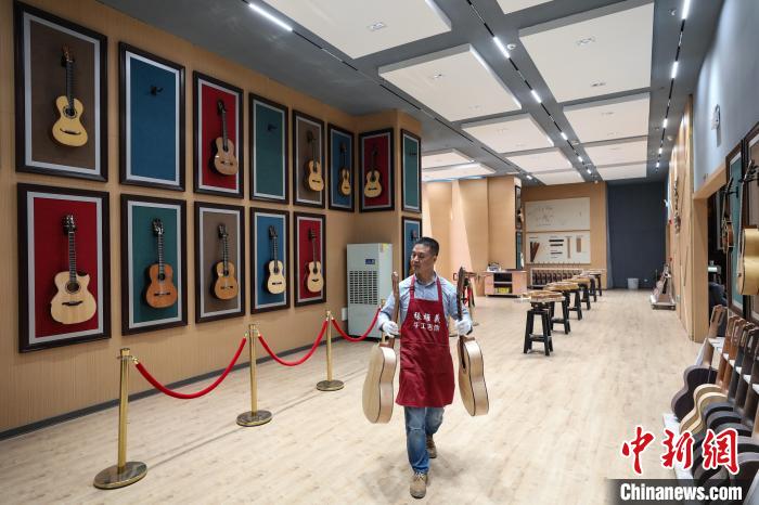 6月4日,张维义在转移半成品吉他。