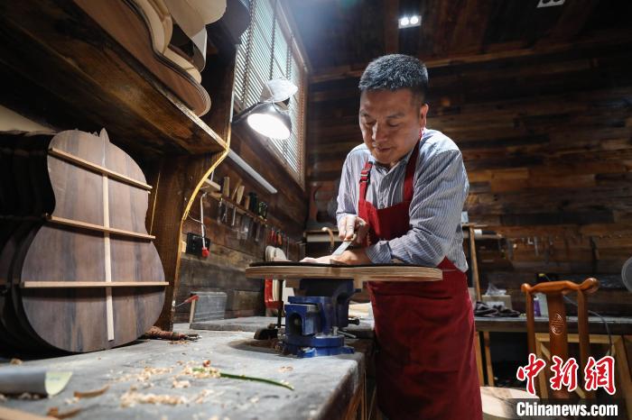 贵州省遵义市正安县被誉为“中国吉他之都”。44岁的张维义是正安县的吉他制作大师,他潜心研究制作吉他已有20年,做好每一把吉他是其一成不变的追求。