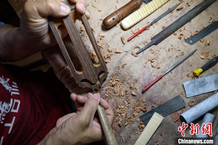 6月4日,张维义在进行法式抛光漆工序。