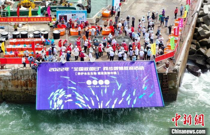 6月6日,中国全国“放鱼日”广东增殖放流活动主会场汕头市南澳岛上,约6600万尾海洋经济物种被投放到海域。6月是水生生物繁衍生息的关键时节,也是养护水生生物资源的黄金时期。此时,珠江已进入禁渔期,四大海域也已全面进入伏季休渔期,利用水域休养生息的黄金时期,大力开展水生生物增殖放流,是在严格落实渔业资源保护措施的同时,加快水生生物资源修复的有效举措。图为中国全国“放鱼日”广东增殖放流活动主会场现场。中新网/广东省农业农村厅供图