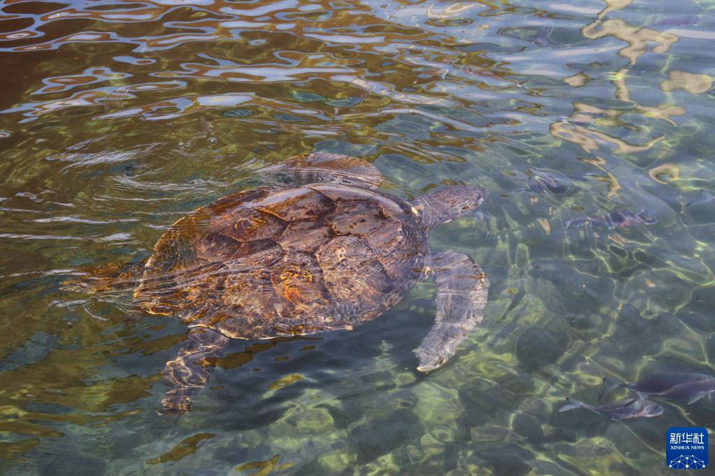 6月6日,在位于以色列北部城市哈代拉附近的以色列自然与公园管理局海龟救援中心,一只海龟在水池中游泳。新华网