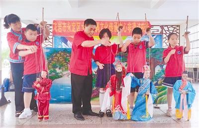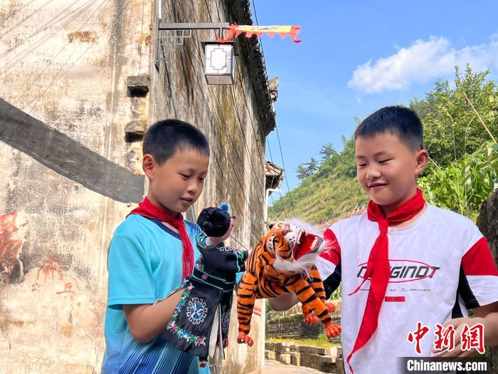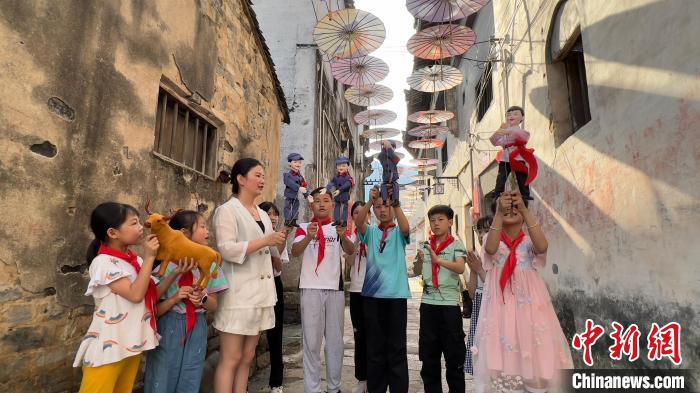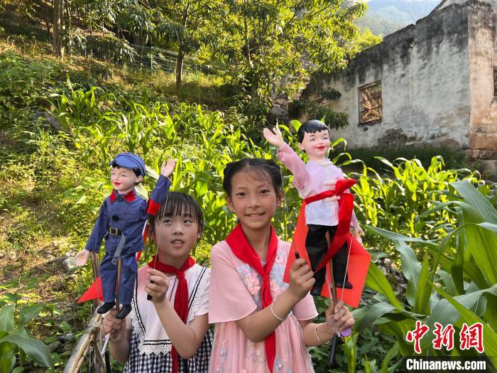 6月8日,在安徽歙县三阳镇竹铺中心学校,孩子们演绎民间傀儡撑木偶戏。中新网