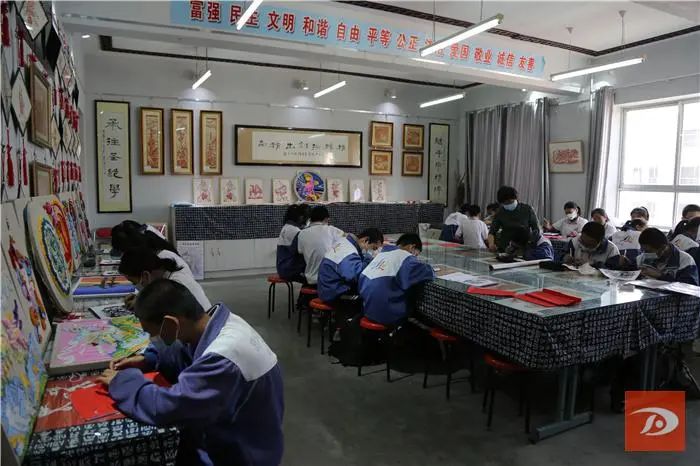 近日,敦煌市第三中学开展的非遗学习培训课程,孩子们在 上课。澎湃新闻