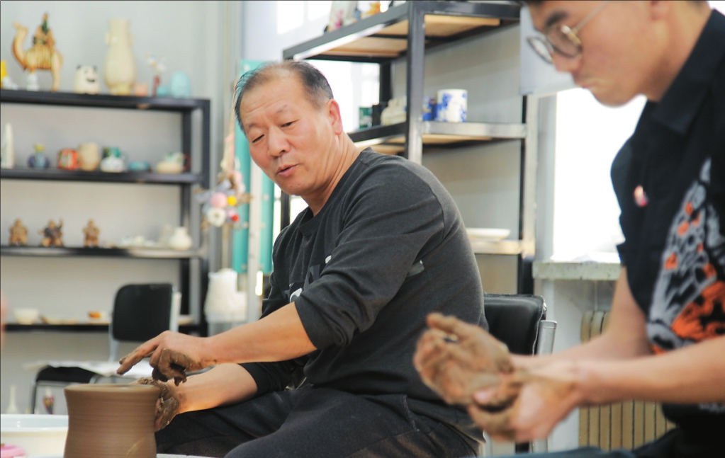 近日,中国省级非遗黑陶技艺传承人李春,带着制作黑陶的材料和工具如约来到哈尔滨剑桥学院。该校艺术学院的20余名学生要跟随李老师体验一场难得的黑陶制作之旅。“第一步就是揉泥,泥揉不好后续都做不好。”李春先手把手教了几种揉泥方法。紧接着是上拉坯机环节,李春坐到椅子上,两腿岔开、手肘稳稳地支在腿的关节处,一旁的学生紧随李春的动作专注地跟学,五六分钟后,一件黑陶罐作品初步定型完成。哈尔滨新闻