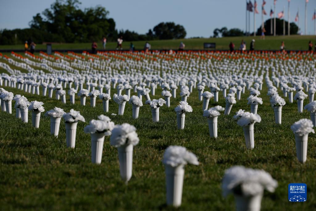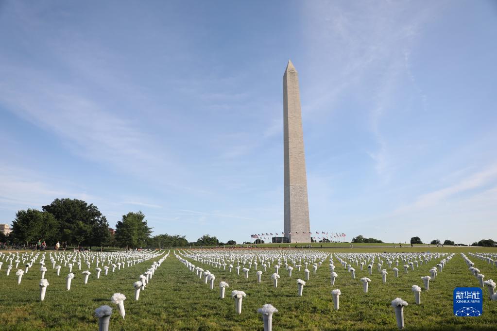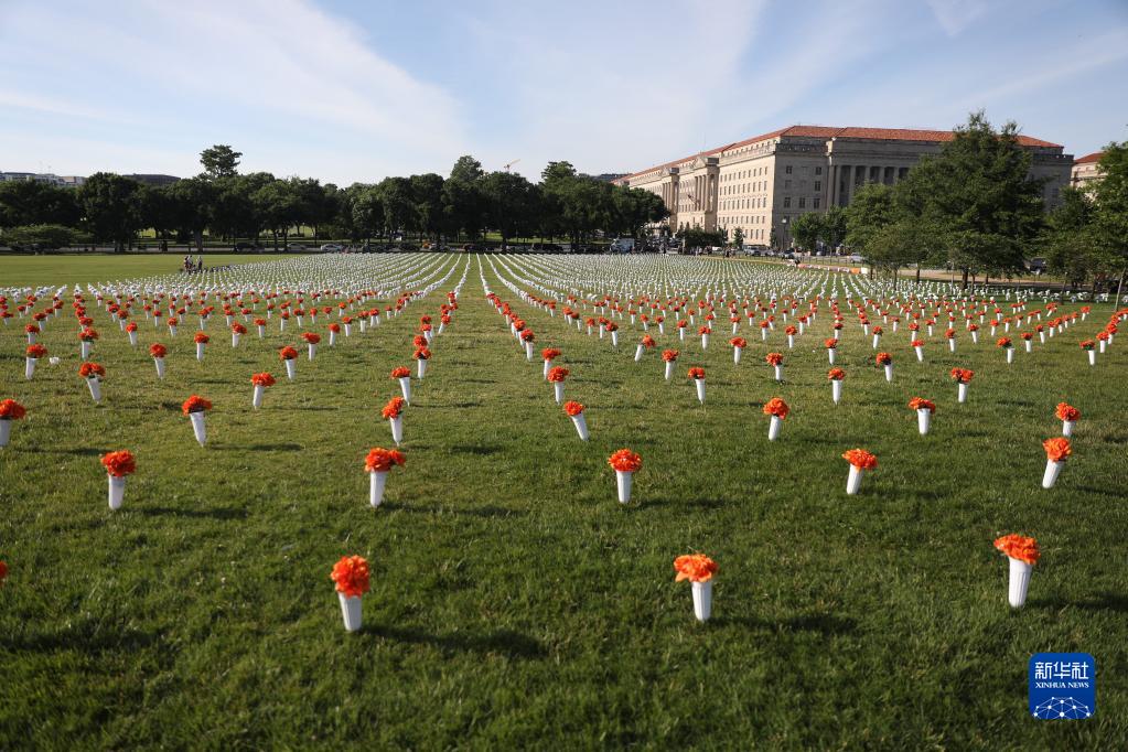 美国首都华盛顿日前揭幕了由数万绢花组成的“全美枪支暴力纪念碑”。据组织者介绍,在华盛顿纪念碑附近放置了4.5万朵绢花,以悼念美国枪支受害者,展示枪患之重,要求华盛顿停止不作为。图为6月6日在美国华盛顿纪念碑附近拍摄的绢花。新华网